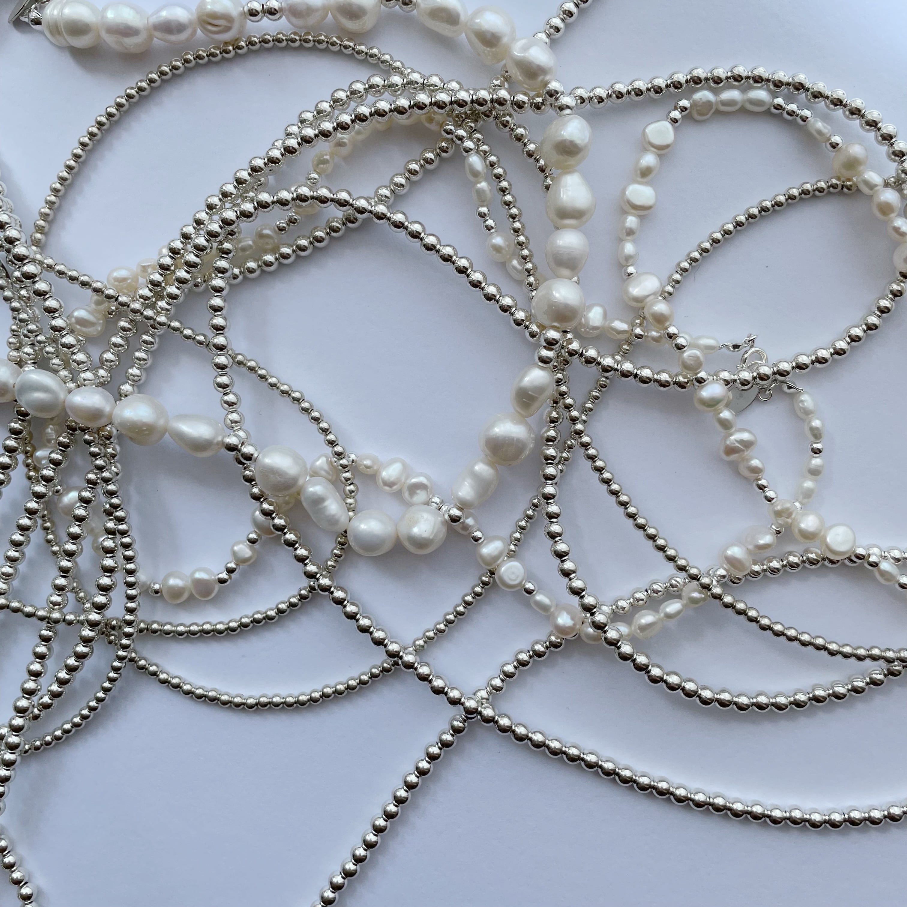 silver925 beads necklace / short